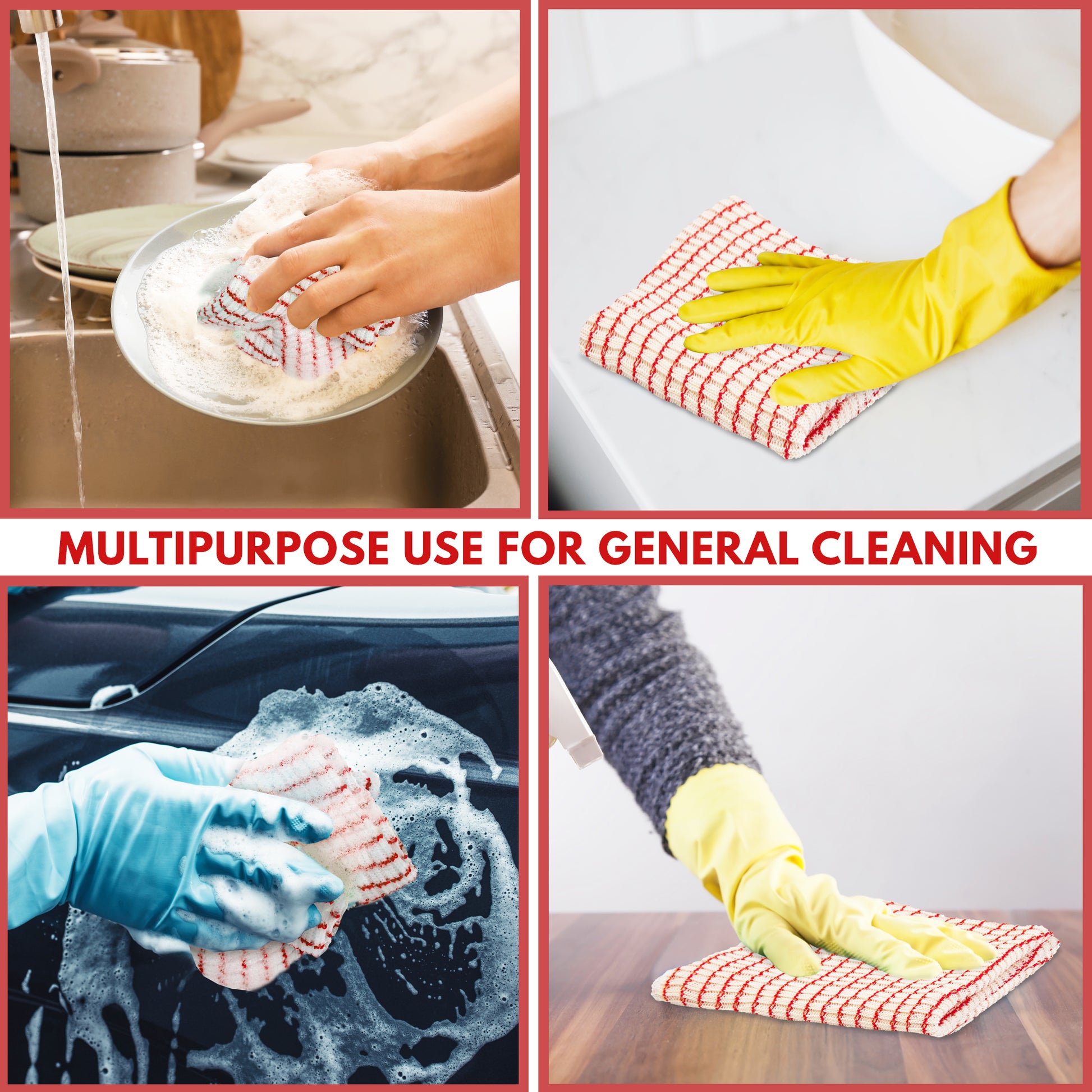 Eselect World's Best Kitchen Dish Cloths - Set of 6 Red Dishcloths for Washing Dishes - Absorbent Poly Cotton Waffle Weave Dish Rags, Made in USA
