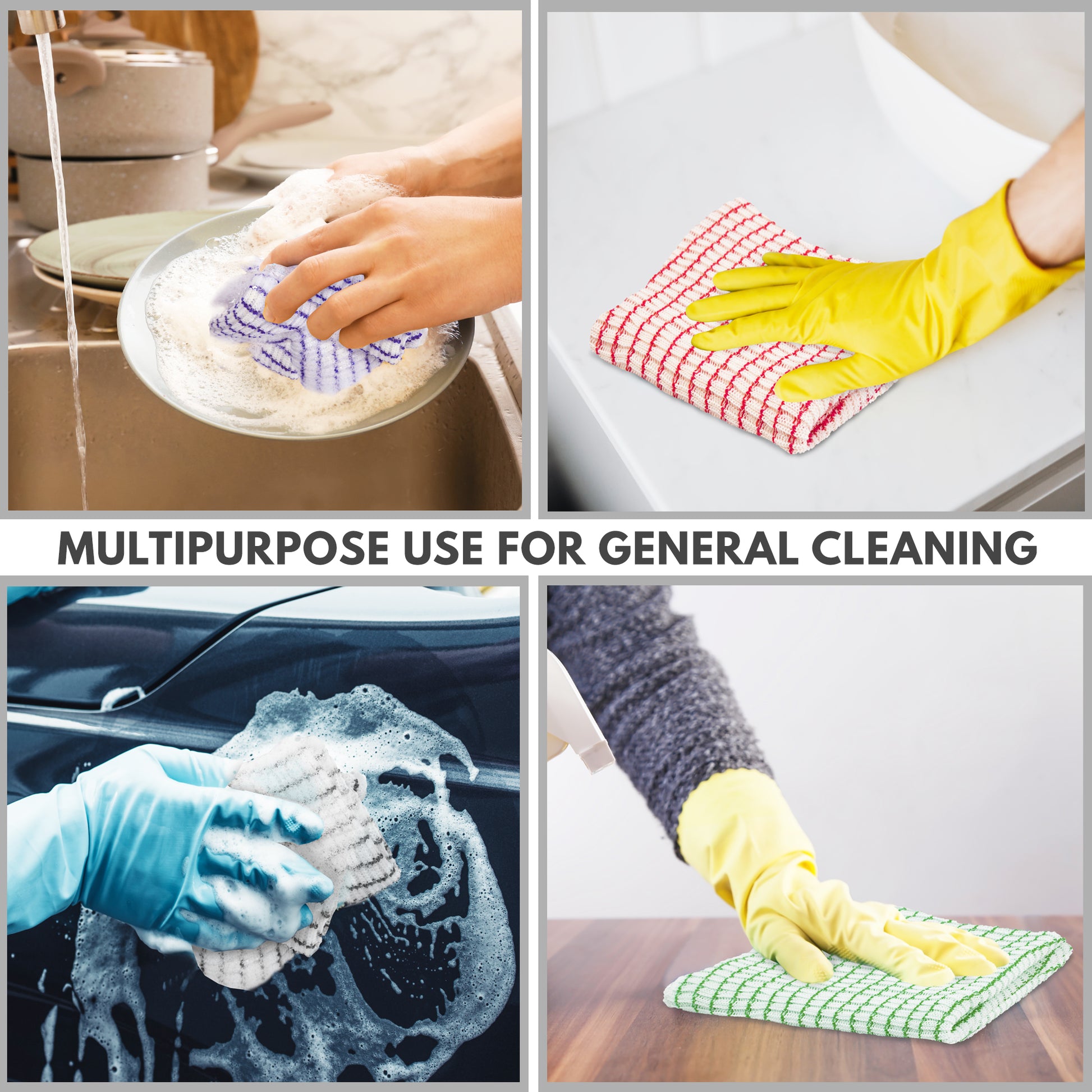 Eselect World's Best Kitchen Dish Cloths - Set of 6 Assorted Dishcloths for Washing Dishes - Absorbent Poly Cotton Waffle Weave Dish Rags, Made in USA
